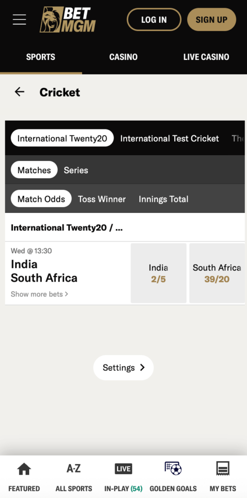 - Strong depth within cricket betting markets on popular events