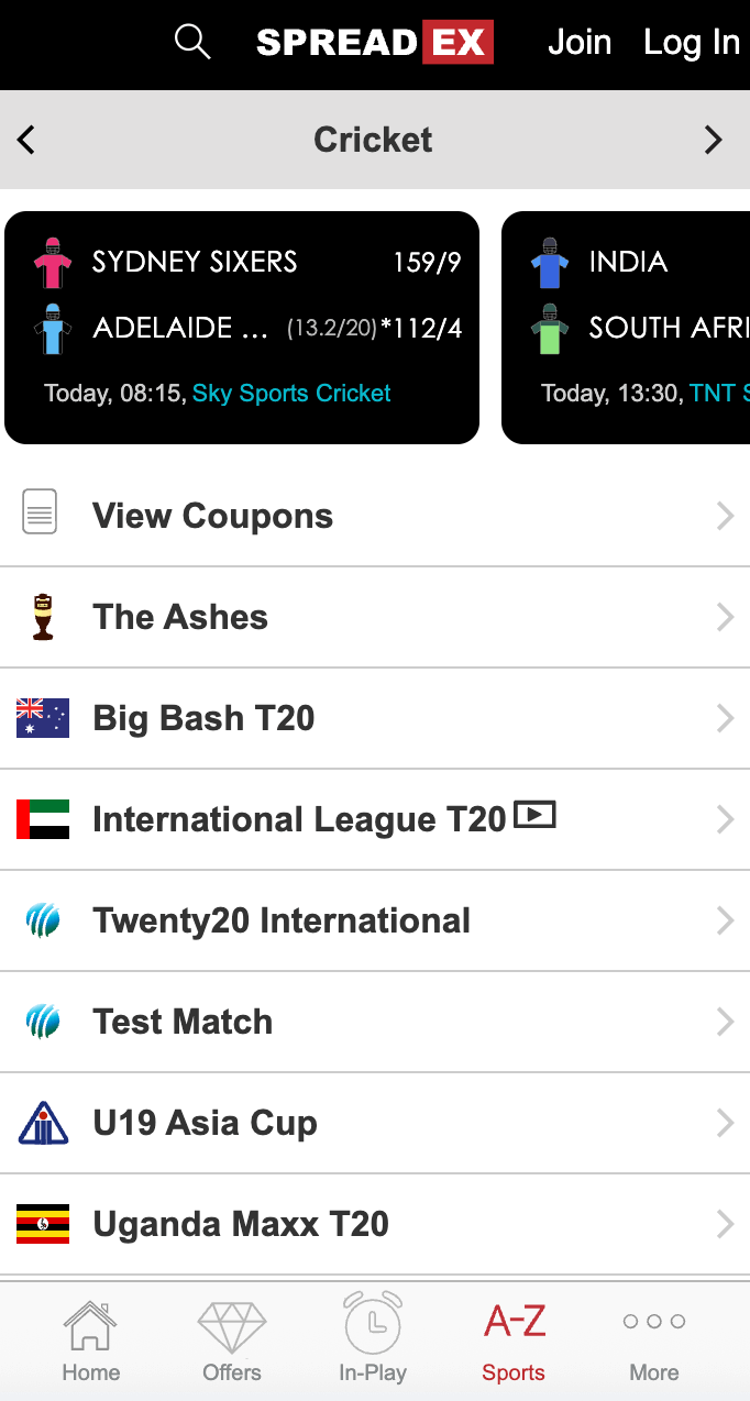 - Spread betting available on cricket