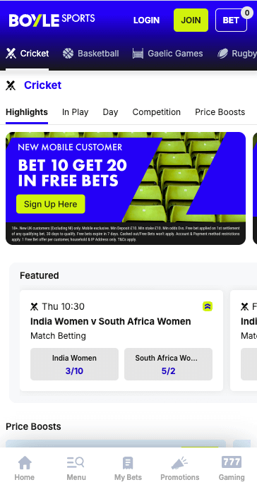 Paddy Power has a great loyalty program for existing customers, which can see them earn a £5 free bet if they wager funds of £25 in the week before, or a £10 free bet if they wager £50 during a week-long period of time. It’s one of the best loyalty programs in the betting industry and well worth taking advantage of if you haven’t done so already, as you can then use some of those free bets on their cricket betting markets.