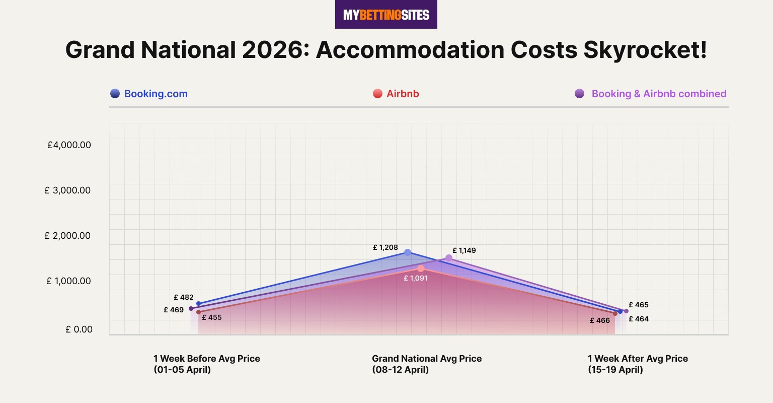 Ahead of the 2026 Grand National, MyBettingSites.co.uk has analysed over 1,000 accommodation listings in Aintree and its surrounding areas on Booking.com & Airbnb to determine how much higher accommodation prices are during the Festival compared to the week before and after.