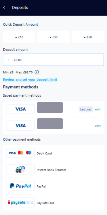 Paddy Power allow you to use PayPal, and they operate their payment services for deposits and withdrawals on a closed loop policy, which may sound complicated, but is actually very helpful and also strengthens the security of their betting site. With Paddy Power, you have to withdraw as much as you’ve deposited from each payment method before you can withdraw to the payment method of your choice.