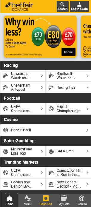 One of the reasons Betfair stands out from rival sites is that you can also use the Betfair Exchange, which means betting against fellow punters rather than the bookmaker themselves. Very often, this results in getting better odds than using a normal sportsbook so it’s well worth the time having a look.