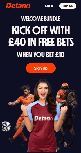 Key Betano T&Cs: 18+ New customers. Opt in, deposit and bet £10 on any sports market (odds 1/1+) within 3 days of sign up. Get 4x£10 Free Bets for set markets. Bonuses expire in 14 days. Full T&Cs | GambleAware.org | Please gamble responsibly