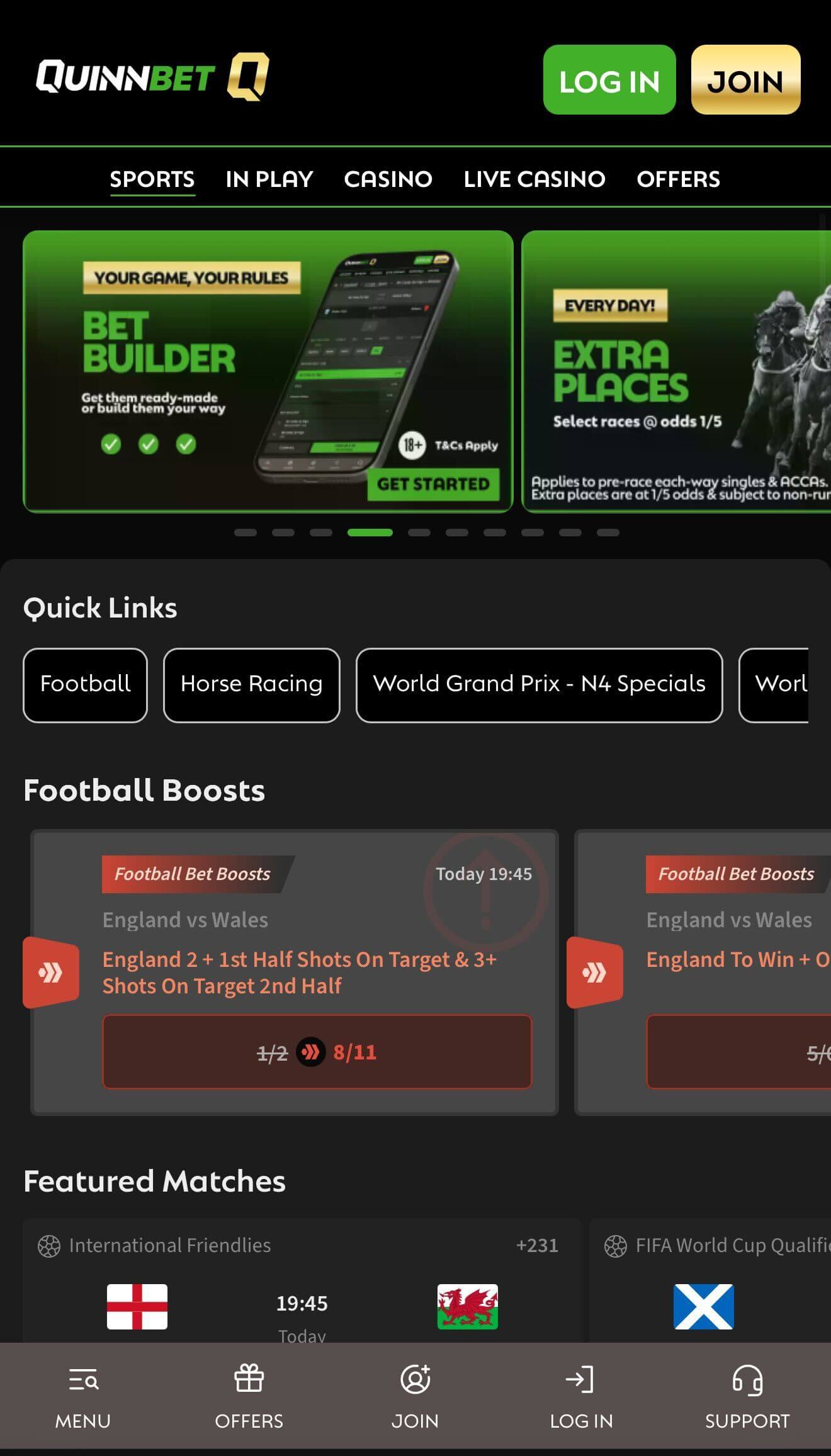 As well as free bets in their new customer offer, QuinnBet also have existing customer offers for sports like horse racing where you can receive free bets.